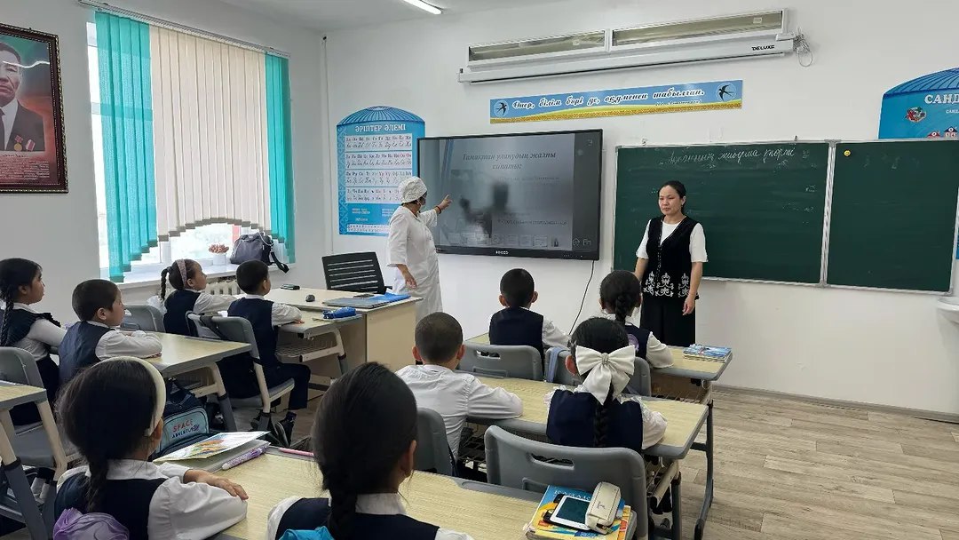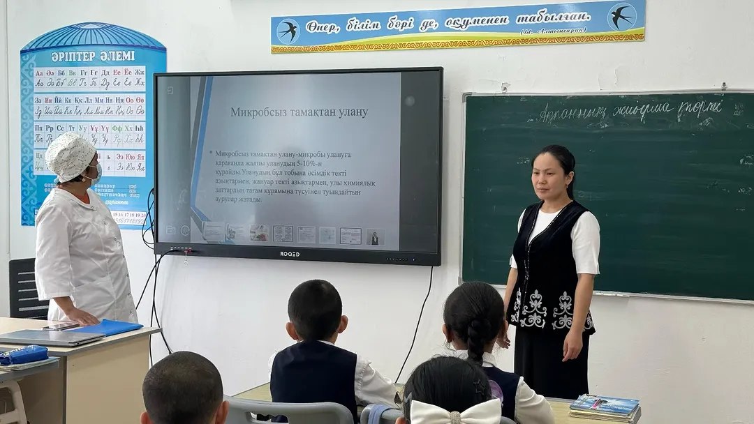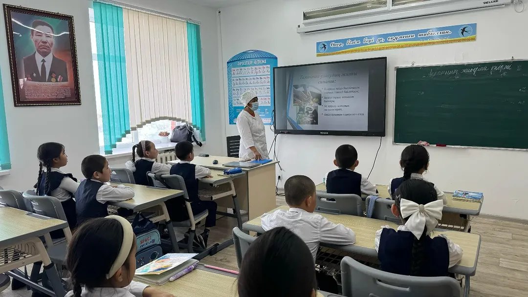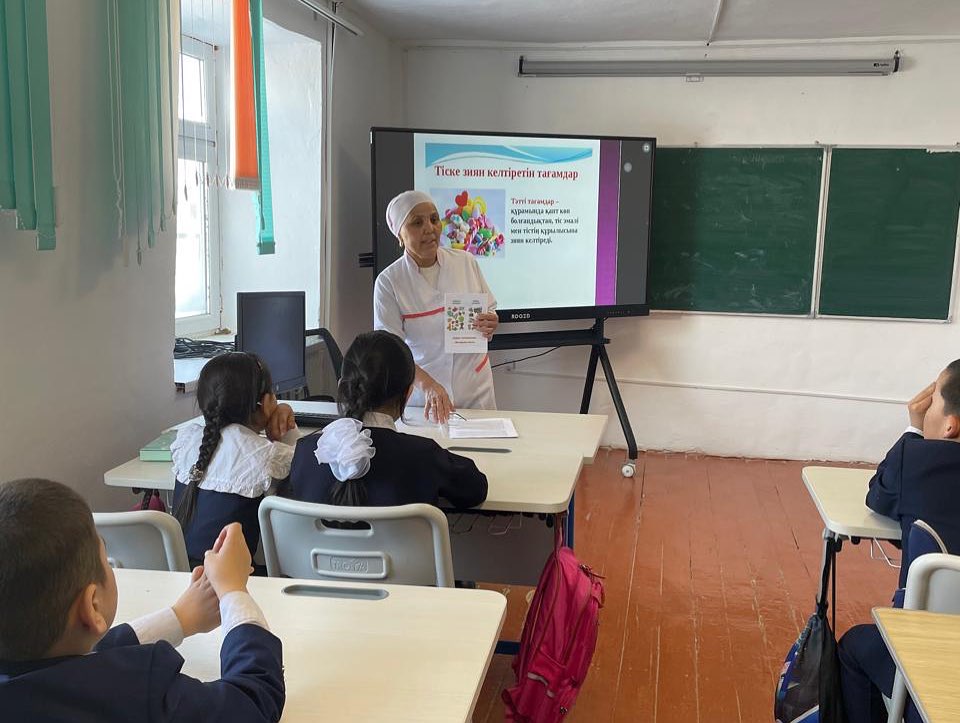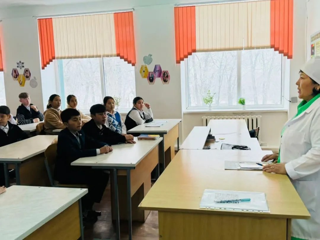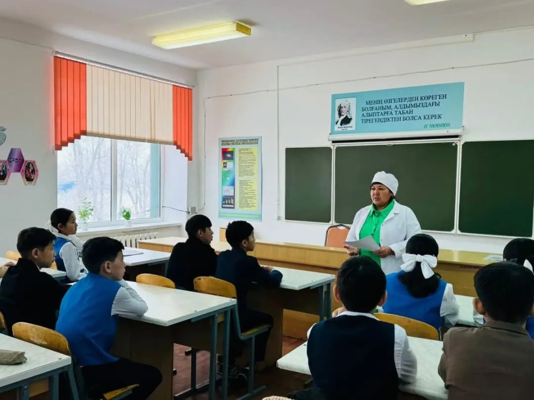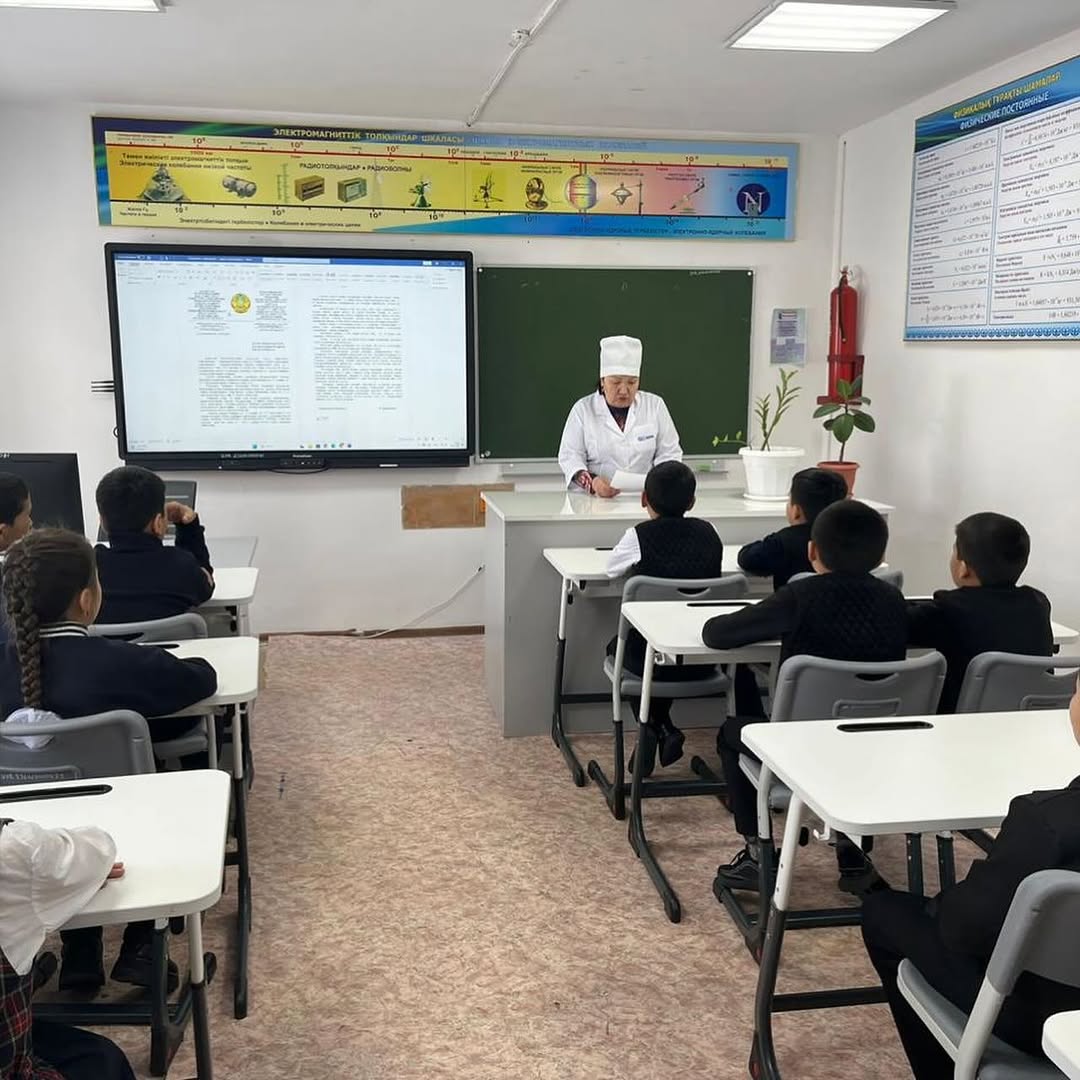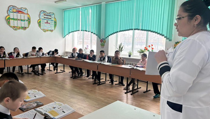 Қазақстан Республикасының денсаулық сақтау министрлігі Санитариялық – эпидемиологиялық бақылау комитеті Ақтөбе облысының санитариялық - эпидемиологиялық бақылау департаменті (бұдан әрі – Департамент) 2025 жылдың 18 ақпан күні улану белгілерімен Қобда ауданындағы мектеп оқушылары арасында тіркелген жағдайға байланысты Сағыз орта мектебінде оқушыларға әлеуметтік педагог Дарбаева Бибигуль және мектеп медбикесі Ақтаева Сая тағамнан уланудың алдын алу мақсатында түсіндірме жұмыстары жүргізілді.