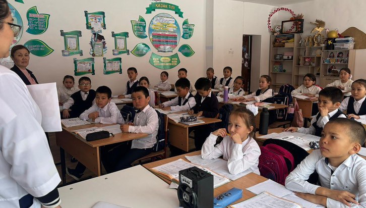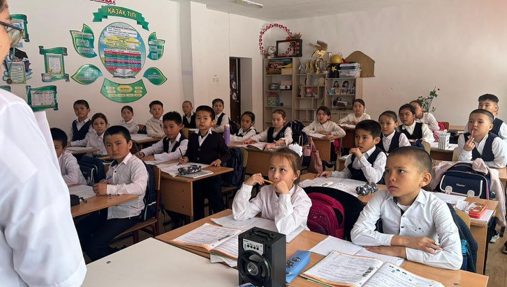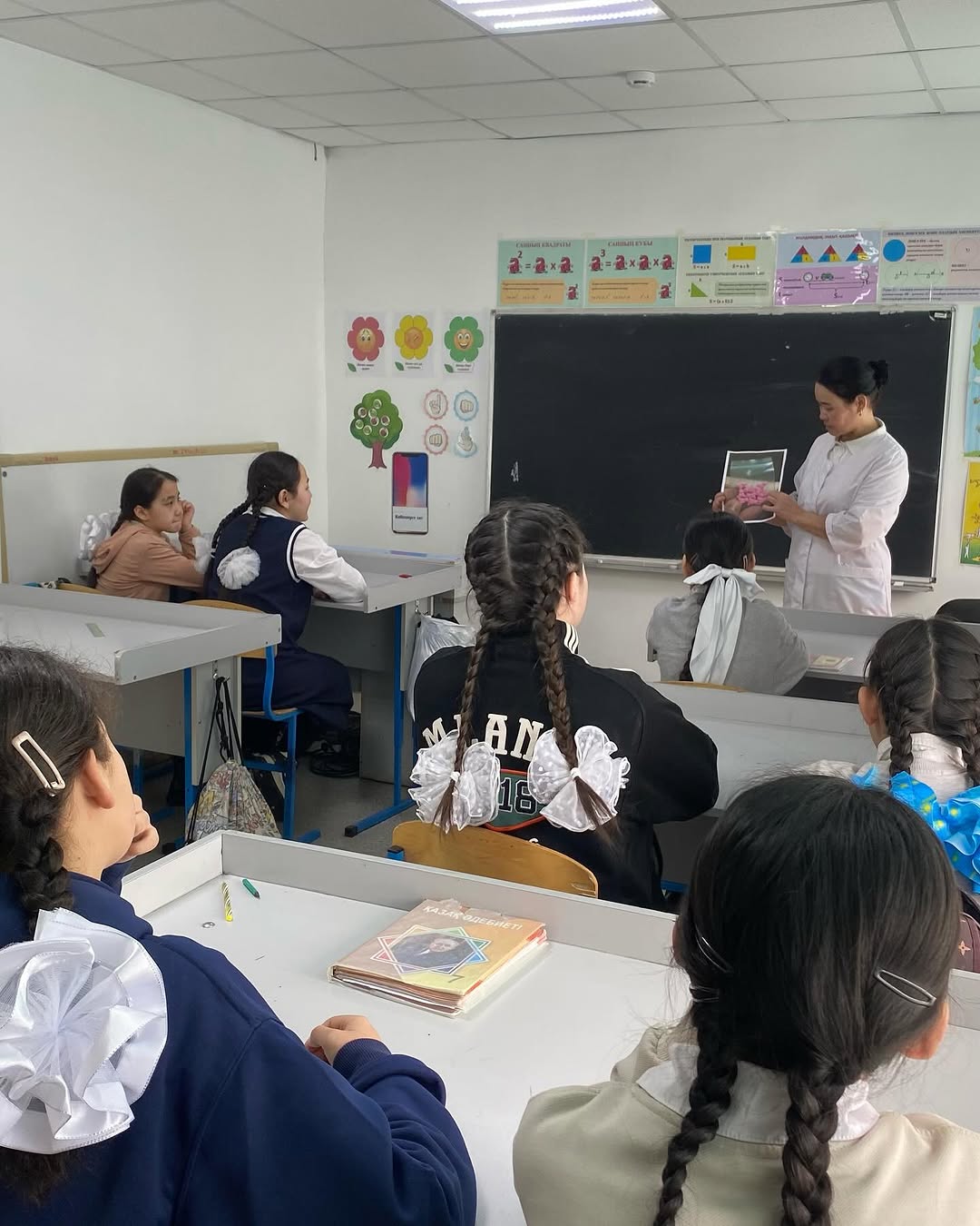 Қазақстан Республикасының денсаулық сақтау министрлігі Санитариялық – эпидемиологиялық бақылау комитеті Ақтөбе облысының санитариялық - эпидемиологиялық бақылау департаменті (бұдан әрі – Департамент) 2025 жылдың 18 ақпан күні улану белгілерімен Қобда ауданындағы мектеп оқушылары арасында тіркелген жағдайға байланысты №2 Қарауылкелді орта мектебінің 1-7 класс оқушыларына Байғанин аудандық санитариялық-эпидемиологиялық бақылау басқармасының басшысы м.а Дүсіп Зәмзәгүл Бағдәулетқызы мен мектеп медбикесі