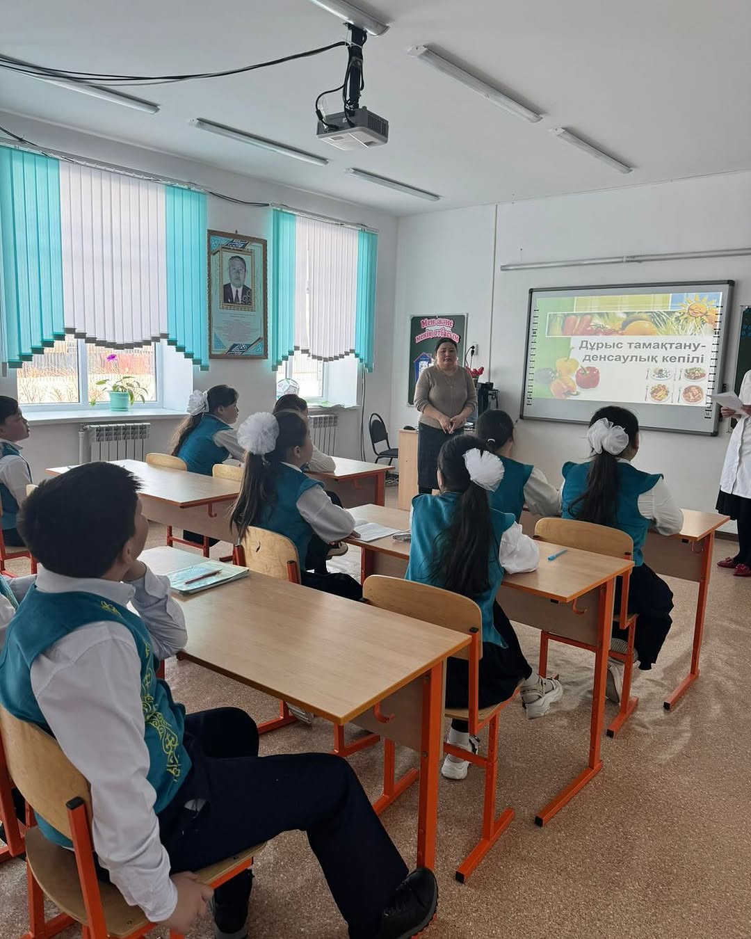 Қазақстан Республикасының Денсаулық Сақтау Министрлігі Санитариялық-эпидемиологиялық бақылау комитеті, Ақтөбе облысының Санитариялық-эпидемиологиялық бақылау департаментінің тапсырмасына сәйкес 2025 жылдың 26-ақпан күні “Қарабұлақ орта мектебі” КММ-де “Дұрыс тақтану” тақырыбында уланудың алдын алу, дұрыс тамақтану әдебін қалыптастыру мақсатында түсіндірме жұмыстары жүргізілді.